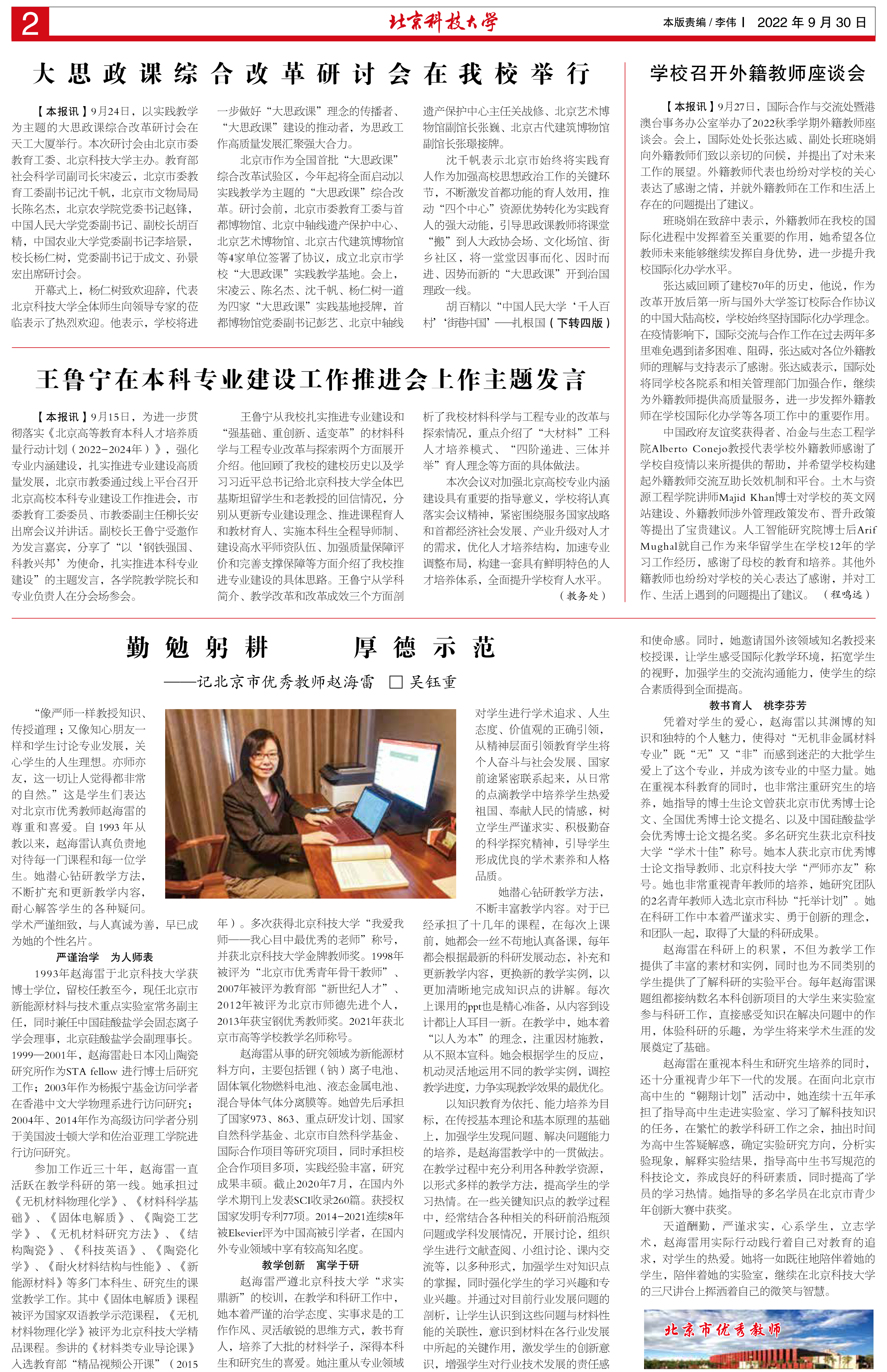 9月15日,为进一步贯彻落实《北京高等教育本科人才培养质量行动计划(2022-2024年)》,强化专业内涵建设,扎实推进专业建设高质量发展,北京市教委通过线上平台召开北京高校本科专业建设工作推进会,市委教育工... -