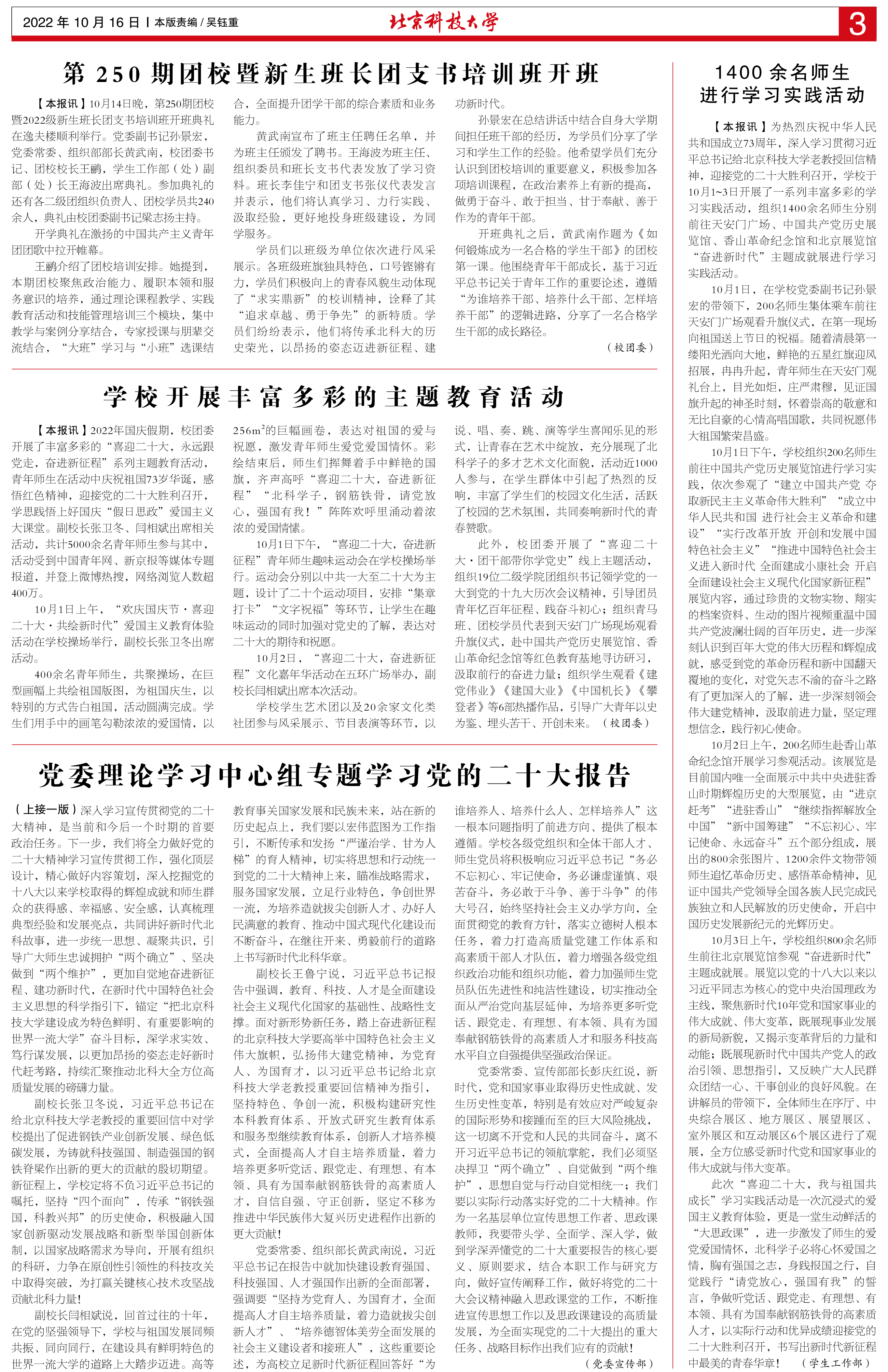 为热烈庆祝中华人民共和国成立73周年,深入学习贯彻习近平总书记给xk星空老教授回信精神,迎接党的二十大胜利召开,学校于10月1~3日开展了一系列丰富多彩的学习实践活动,组织1400余名师生分别前往天安门广...